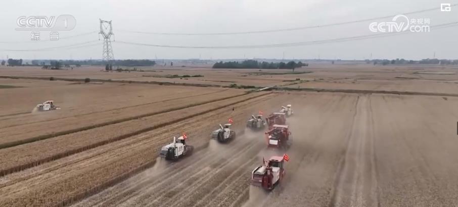 總臺央視記者 陳燁煒:這里是湖北省襄陽市的羅咀村,在我身后幾臺大型的聯(lián)合收割機(jī)在金色的麥田里來回穿梭,伴隨收割機(jī)的轟鳴聲,金燦燦的麥穗和麥稈分離,一粒粒金黃色的小麥進(jìn)入了收割機(jī)的糧倉當(dāng)中。