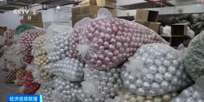 在義烏一家生產(chǎn)圣誕球的企業(yè)里,工人們忙著把剛剛組裝完的成品運往倉庫。負責(zé)人告訴記者,今年他們的訂單同比增長30%左右。