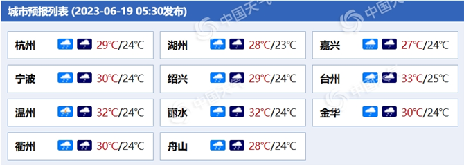后天,浙北地區(qū)多云到陰,午后局部有陣雨或雷雨;浙中南地區(qū)陰有陣雨或雷雨。 以上有雷雨地區(qū)局部可伴有短時(shí)暴雨和個(gè)別8-10級(jí)雷雨大風(fēng)。