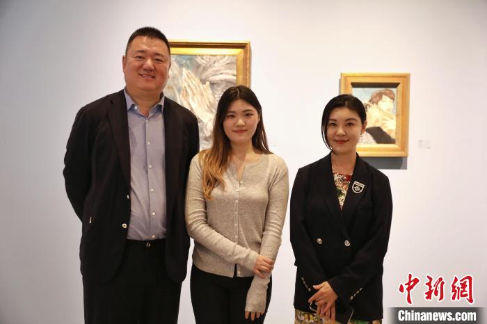 6月底,在北京舉辦個人藝術(shù)展的臺灣青年于飛(中)與父母。中新社記者 李雪峰 攝