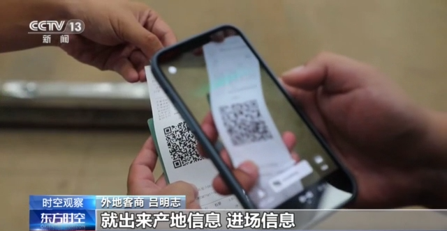 外地客商 呂明志:通過一卡通消費了之后,掃上邊這個追溯碼,就出來產(chǎn)地信息、進(jìn)場信息、檢測信息,還有采摘時間,所以說現(xiàn)在很方便,比較安全。