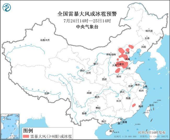 中央氣象臺7月24日10時發(fā)布強對流天氣藍色預警
