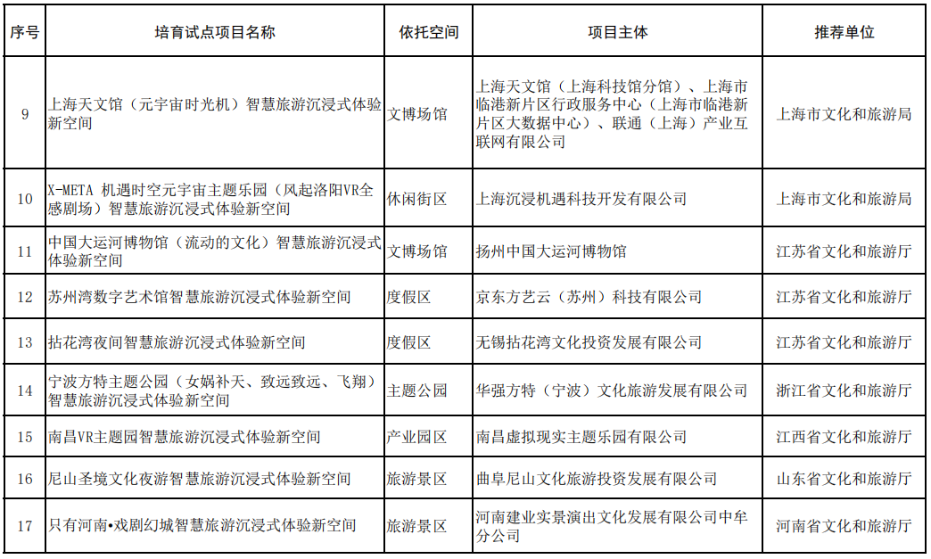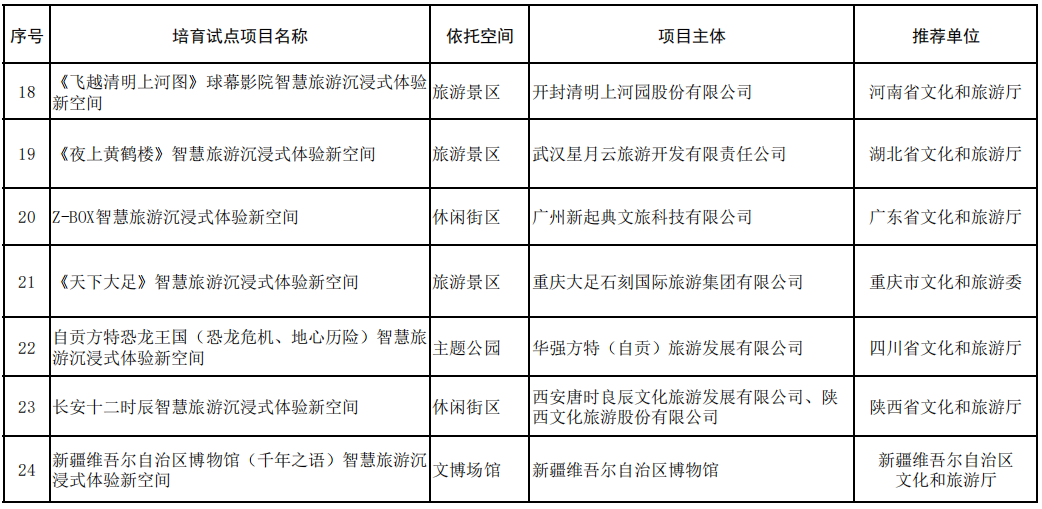 全國首批24個智慧旅游沉浸式體驗新空間培育試點公示