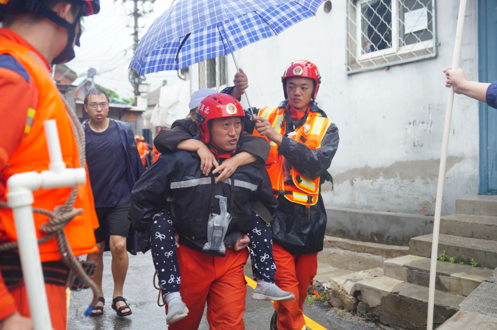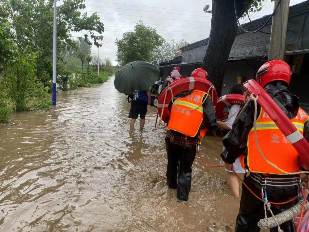 7月31日13時36分,石景山區(qū)廣寧街道麻峪村內(nèi)道路積水最深處達(dá)1米,石景山區(qū)消防救援支隊(duì)接警后,出動指戰(zhàn)員35人、消防車8輛、沖鋒舟6艘,對被困居民進(jìn)行疏散。