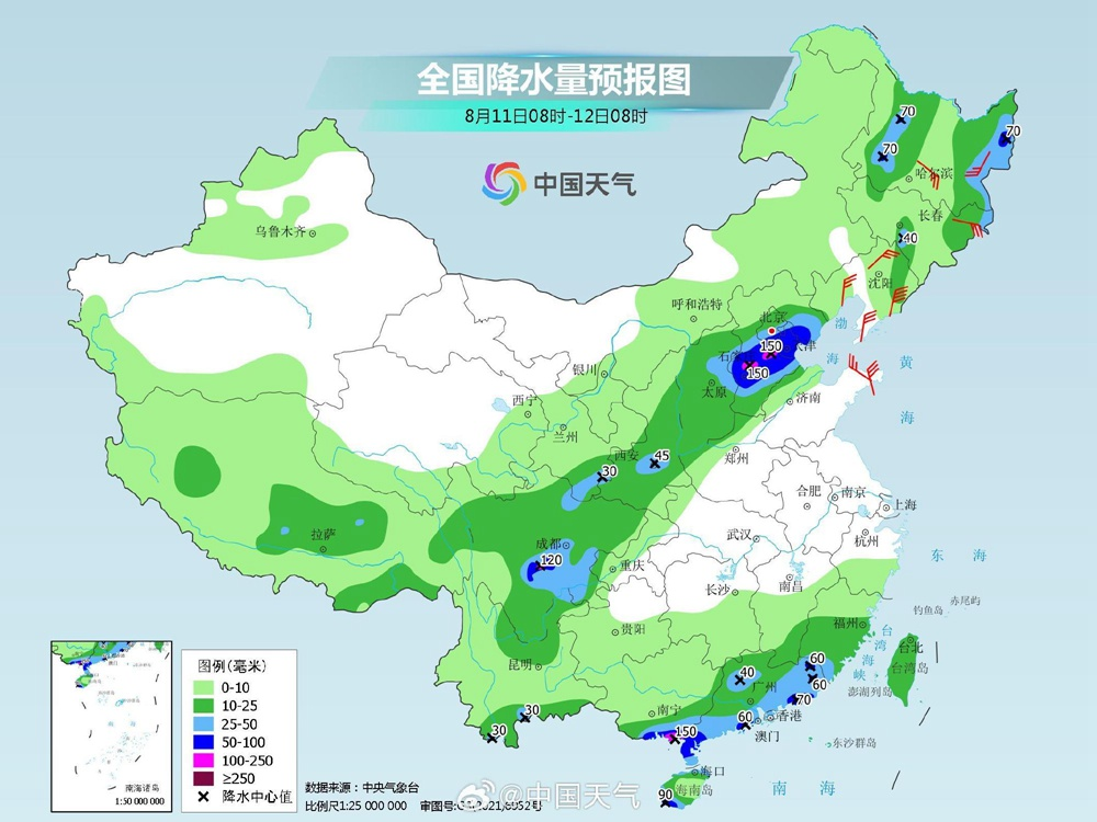 受高空槽東移和低渦切變系統(tǒng)共同影響,今明兩天(8月11日至12日),京津冀地區(qū)將再度遭遇新一輪強(qiáng)降雨天氣過(guò)程,部分地區(qū)雨勢(shì)強(qiáng)勁,需注意防范。