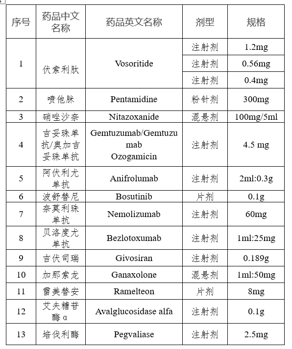 據(jù)介紹,第四批清單有24個品種,涉及30個品規(guī)、9種劑型,覆蓋神經(jīng)系統(tǒng)用藥、消化道和新陳代謝用藥、抗腫瘤藥及免疫調(diào)節(jié)劑等治療領(lǐng)域。