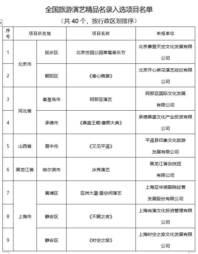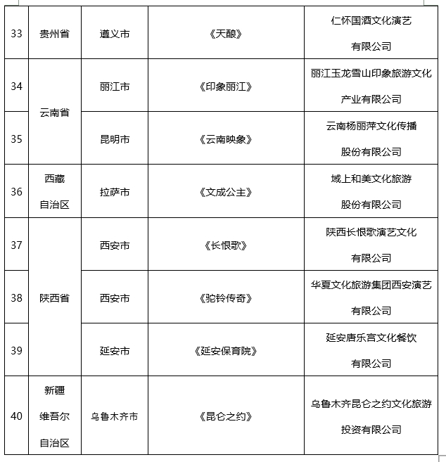 共40個(gè)!全國(guó)旅游演藝精品名錄入選項(xiàng)目名單出爐