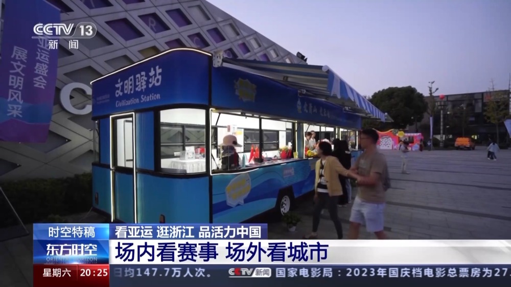 總臺記者 孫銳:這里是杭州市蕭山區(qū)的錢江世紀(jì)公園,每到傍晚這里就會格外熱鬧,大家圍著亞運觀賽空間看比賽,或到附近的亞洲花卉主題展園賞花;又或者到錢塘江邊的綠道上吹吹江風(fēng),感受秋意。