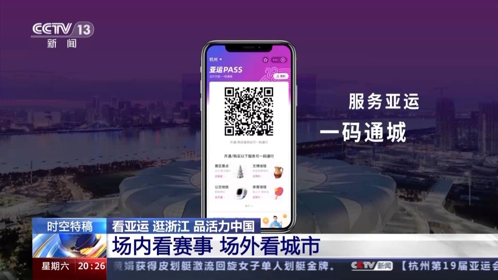 這樣細(xì)致、貼心的理念已經(jīng)滲透到了杭州公共服務(wù)的方方面面。還有更方便的,您看我手上這個二維碼叫亞運pass碼,現(xiàn)在我們只要通過這一個二維碼,就可以乘公交、乘地鐵、景區(qū)入園等等功能,不用再在各種不同的二維碼之間來回切換了。
