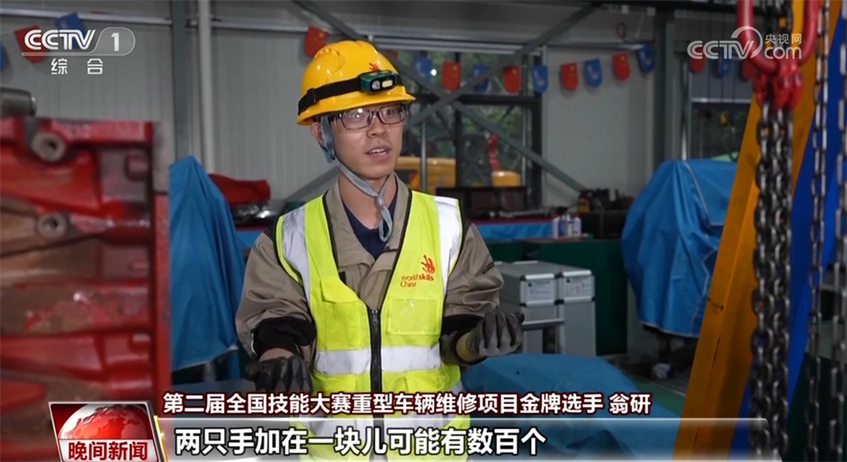 第二屆全國技能大賽重型車輛維修項目金牌選手 翁研:我們這個訓練講究的就是熟練度,每天都在練。我記得有一次練得很累,在車上睡著了,一覺醒來,手上面都是蚊子包,兩只手加在一塊兒可能有數(shù)百個。