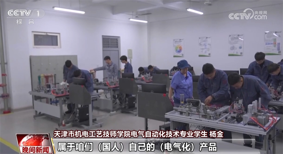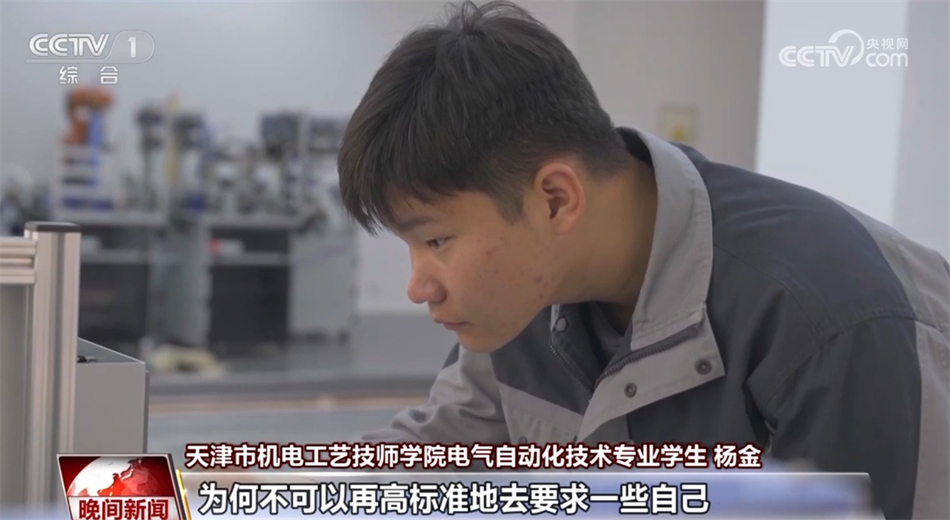 天津市機電工藝技師學院電氣自動化技術專業(yè)學生 楊金:讓每一顆螺絲、每一個部件都能發(fā)揮出它最大的作用,這就是我的需要和目標了。(未來希望)自主去研發(fā)需要使用的機器,可以去創(chuàng)造(更多)屬于咱們(國人)自己的(電氣化)產品。
