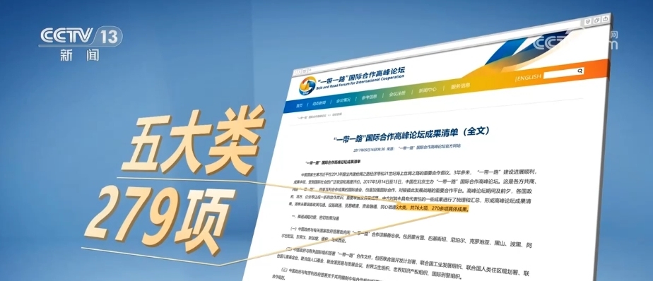 第一屆“一帶一路”國(guó)際合作高峰論壇誕生的首張成果清單,涵蓋了五大類的279項(xiàng)具體成果。政策溝通、設(shè)施聯(lián)通、貿(mào)易暢通、資金融通、民心相通成為各國(guó)合作的重點(diǎn)。