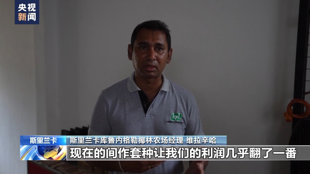 總臺(tái)記者 張玥:這里是斯里蘭卡中部一個(gè)大型的椰樹種植農(nóng)場。不過,大家可以在我身后看到,這片較矮的植物是肉桂種植園區(qū)。我手里還有一株剛剛在前面的黑胡椒種植園區(qū)摘下來的新鮮黑胡椒。一些中國專家?guī)砹酥袊诤限r(nóng)作物種植的經(jīng)驗(yàn)和新的方法,讓斯里蘭卡一些這樣原本只有椰樹種植的園林,豐富成為融合農(nóng)產(chǎn)品的生產(chǎn)基地。