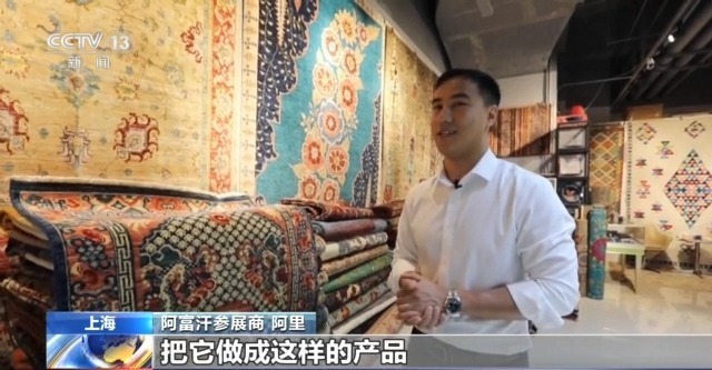 阿富汗參展商 阿里:我們按照客戶的要求不斷地改變這些圖案,有的地毯上可以看到龍,這也是我們學(xué)到了中國(guó)傳統(tǒng)文化之后,把它做成這樣的產(chǎn)品。
