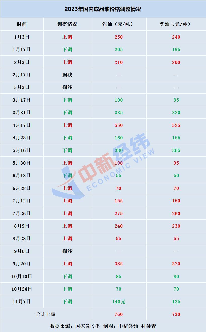 中新經緯梳理發(fā)現,國內成品油在今年已歷經二十二輪調整,呈現“十漲九跌三擱淺”的格局,汽油價格累計上漲760元/噸,柴油價格累計上漲730元/噸。