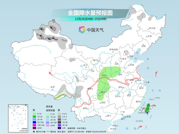 后天,內(nèi)蒙古東北部、黑龍江西北部、新疆北部、西藏東部等地部分地區(qū)有小雪或雨夾雪,其中,新疆北疆北部和沿天山地區(qū)等地部分地區(qū)有中到大雪。西北地區(qū)東部、華北南部、黃淮西部、西南地區(qū)東部、臺灣島等地部分地區(qū)有小到中雨,其中,臺灣島等地部分地區(qū)有大雨。