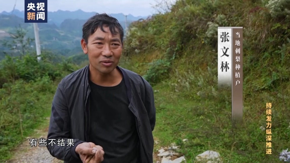 當(dāng)?shù)卮汤娣N植戶 桃橋飛:這七八年都沒有收益過,要是早有點(diǎn)收益的話可能老百姓就想種下去了。像這個(gè)就是砍掉的刺梨了,這個(gè)果子就是這樣的,還沒有熟都已經(jīng)爛了,不如把它翻出來種一點(diǎn)苞谷洋芋,至少還有點(diǎn)收成。