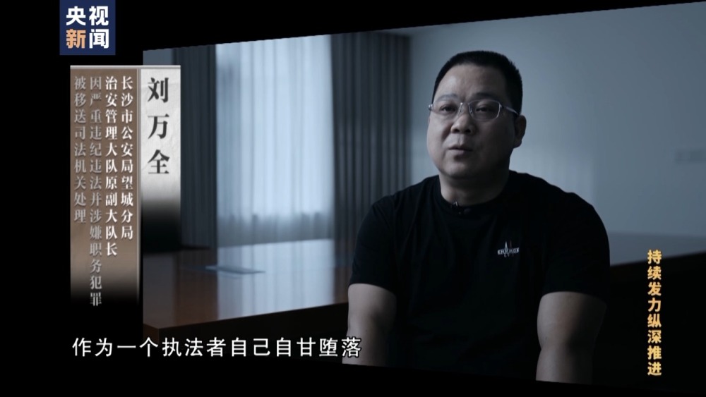 長沙市公安局望城分局治安管理大隊原副大隊長 劉萬全:總共送了兩萬三還是兩萬五千塊錢。作為一個執(zhí)法者,自己自甘墮落,為了這些蠅頭小利,貪小利貪小便宜,沒有守住紀律的、法律的底線。