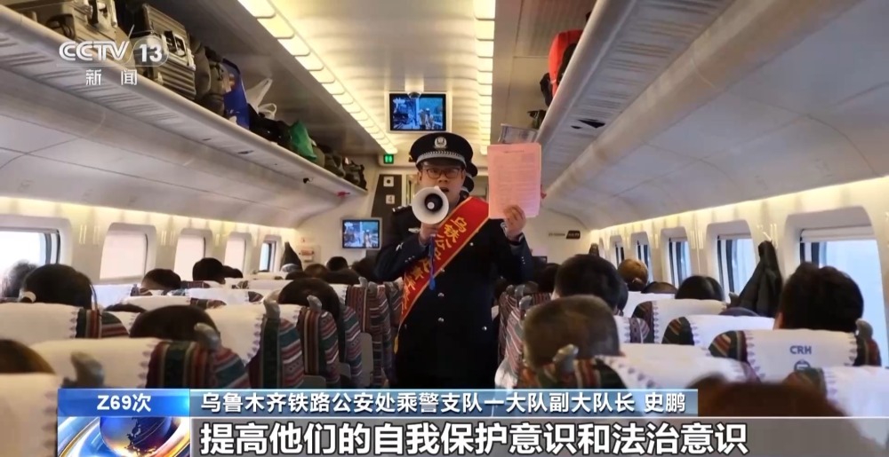 烏魯木齊鐵路公安處乘警支隊一大隊副大隊長 史鵬:希望通過這種方式,能夠讓乘坐我們列車的旅客提高他們的自我保護意識和法治意識,確保旅客們平安出行。