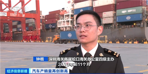 深圳海關(guān)所屬蛇口海關(guān)辦公室四級(jí)主辦 鐘楷:疊加提前申報(bào)抵港直裝,最大程度為企業(yè)降本提速。2023年前11個(gè)月,深圳市一共出口小汽車(chē)206.3億元,同比增長(zhǎng)2倍多;其中電動(dòng)載人汽車(chē)190.8億元,占汽車(chē)出口總值的92.5%。