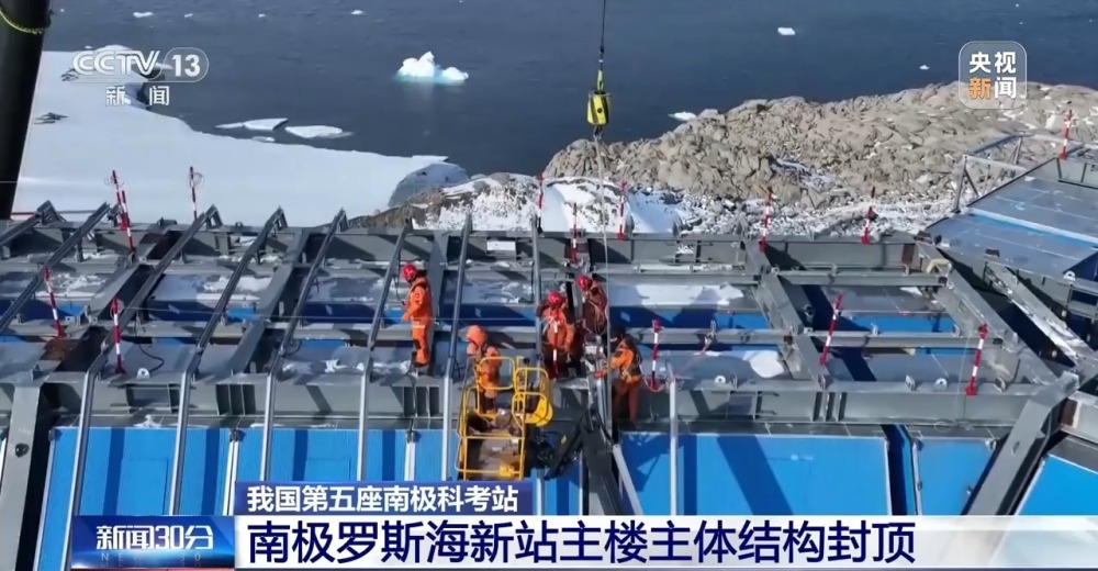 今天,正在建設(shè)中的我國第五座南極科考站——羅斯海新站,完成主樓最后一根鋼梁吊裝,標(biāo)志著新站主樓主體結(jié)構(gòu)實(shí)現(xiàn)封頂。