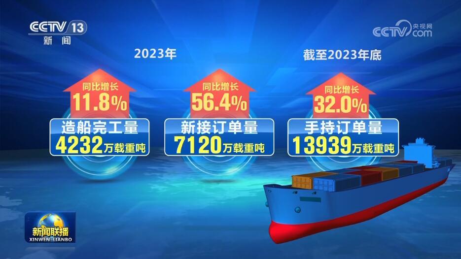 最新數(shù)據(jù)顯示,2023年我國造船完工量4232萬載重噸,同比增長11.8%;新承接訂單量7120萬載重噸,同比增長56.4%;截至2023年底,手持訂單量13939萬載重噸,同比增長32.0%,所有指標(biāo)第一次實(shí)現(xiàn)2位數(shù)增長。