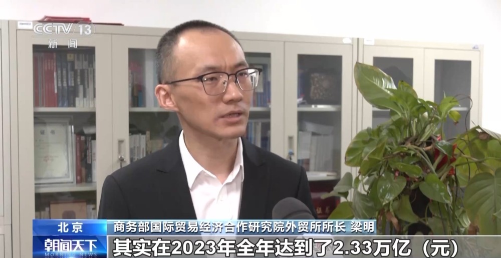 商務(wù)部國際貿(mào)易經(jīng)濟(jì)合作研究院外貿(mào)所所長 梁明:(我們的)跨境電商,在2023年全年達(dá)到了2.33萬億,同比增長15.6%,比去年增速是加快了5.8個百分點(diǎn)?!靶氯龢印蔽覀円彩鞘状瓮黄?萬億,增速是接近30%。