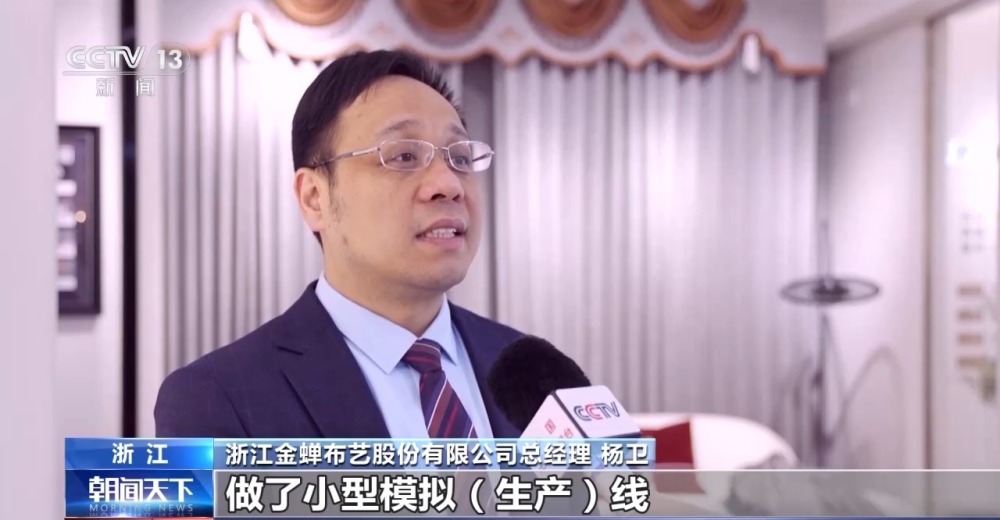 浙江金蟬布藝股份有限公司總經(jīng)理 楊衛(wèi):剛開始,父輩們會覺得投資好大,它效果怎么樣?然后我列了各種數(shù)據(jù)做了小型模擬生產(chǎn)線,把這些結(jié)果給父親看,最后父親覺得確實應(yīng)該走智能化的道路,然后我們就更大規(guī)模投建整個的智能工廠。