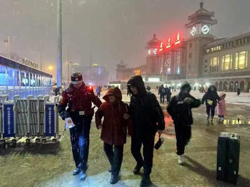 北京豐臺站地區(qū)就采取多種措施應對極端低溫天氣,服務好春運返程夜間集中大客流。增加與鐵路會商頻度,落實每半小時溝通聯(lián)絡一次,及時準確掌握列車晚點停運情況,根據(jù)客流情況調(diào)整夜班公交和公交高鐵專線的保障,協(xié)調(diào)網(wǎng)約車企業(yè),保障運力。按照“隨下隨掃”原則進行掃雪鏟冰作業(yè),緊盯東南出站口、連廊周邊、匝道、地鐵口附近、停車場等重點區(qū)域,做好清掃、采取防滑措施并做好防滑提示。在南廣場和地下出租車調(diào)度站,為有需要的旅客和司機提供紅糖姜水。