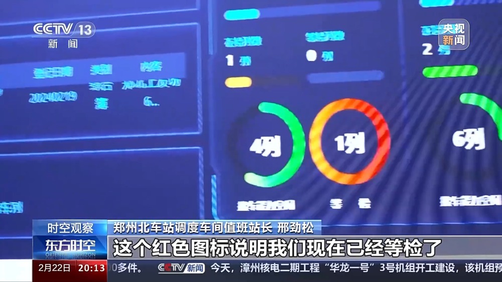 鄭州北車站調(diào)度車間值班站長(zhǎng) 邢勁松:三種圖標(biāo),你看黃色圖標(biāo)說(shuō)明我們檢車能力不太緊張,然后綠色圖標(biāo)說(shuō)明我們接車能力空閑,紅色圖標(biāo)說(shuō)明我們現(xiàn)在已經(jīng)等檢了。今天我們白班基本上開了三列化肥煤車,通過大數(shù)據(jù)服務(wù)我們的春耕生產(chǎn)。