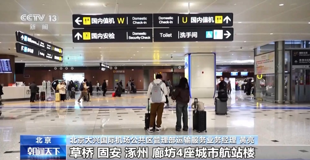 北京大興國際機場公共區(qū)管理部運輸服務(wù)業(yè)務(wù)經(jīng)理 黃亮:大興機場投運4年多來,草橋、固安、涿州、廊坊4座城市航站樓累計服務(wù)旅客超135萬人次。京雄高速和津興城際鐵路開通,目前每日開行列車26對,覆蓋北京、天津、雄安、霸州、固安、唐山等區(qū)域;通過鐵路換乘,大興機場兩小時地面交通圈可以覆蓋京津冀地區(qū)主要城市。