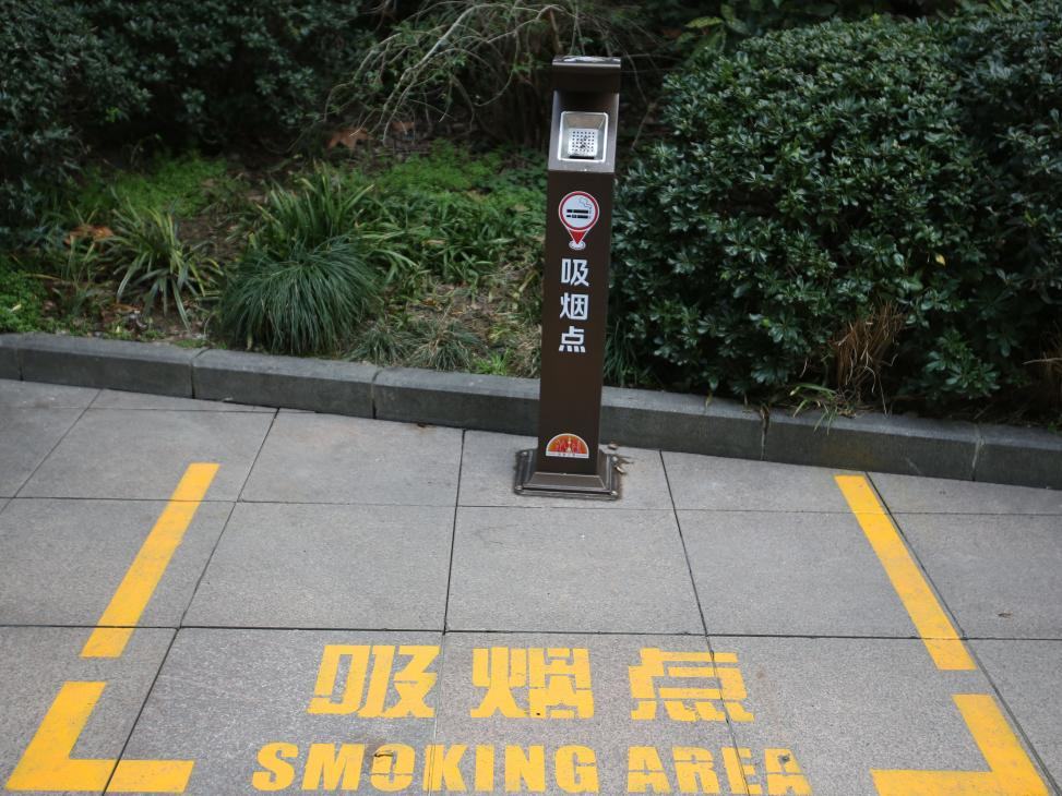 在南京路步行街附近拍攝的室外吸煙點(diǎn)。新華每日電訊記者 辛夢晨 攝