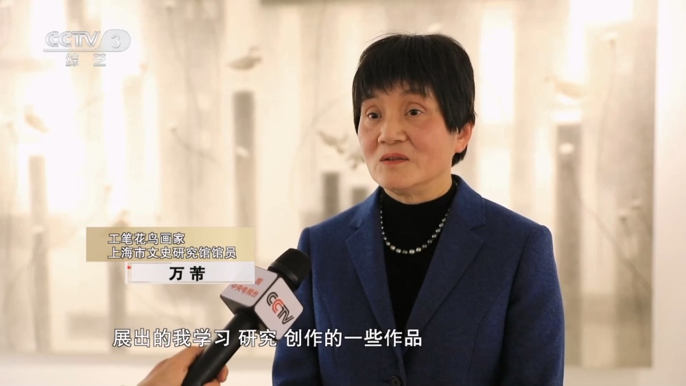 工筆花鳥畫家 上海市文史研究館館員 萬芾:實(shí)際上展覽的這個(gè)時(shí)間度是跨越了有四十多年,展出的我學(xué)習(xí)、研究、創(chuàng)作的一些作品。我是和策展人一起商量,把自己從學(xué)習(xí)到成為一個(gè)女性藝術(shù)家這個(gè)經(jīng)歷做一個(gè)梳理,以及我畫的一些跨界的一些創(chuàng)作,甚至還有我和學(xué)生合作的一些衍生品,這是三個(gè)部分,完全不一樣的內(nèi)容來展現(xiàn)給大家。