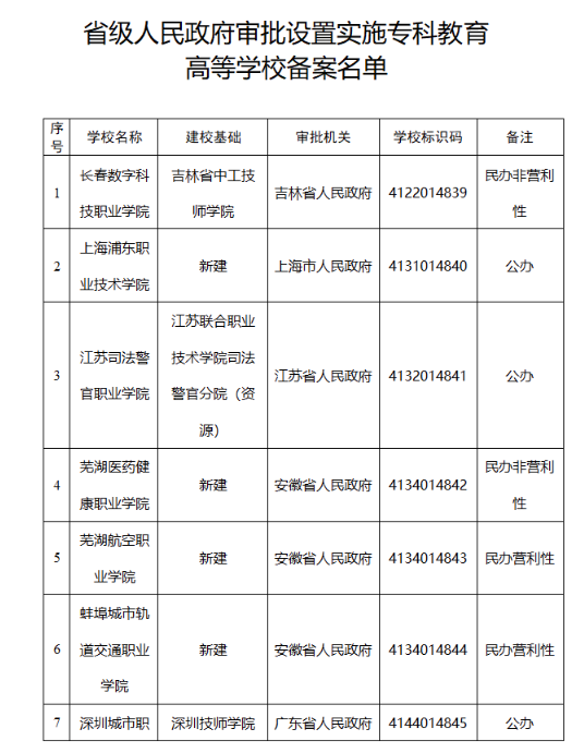 央廣網(wǎng)北京3月25日消息(記者馮儀) 近日,教育部根據(jù)《中華人民共和國(guó)高等教育法》《普通高等學(xué)校設(shè)置暫行條例》等有關(guān)法律法規(guī)和政策文件的規(guī)定,將省級(jí)人民政府審批新設(shè)的??茖哟胃叩葘W(xué)校備案名單予以公布。