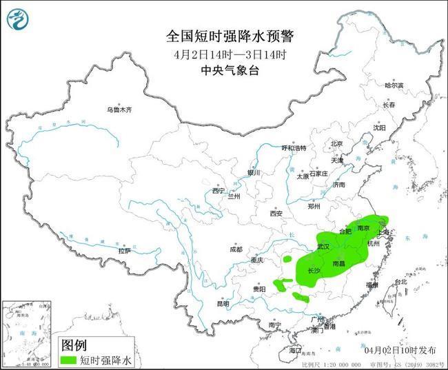 預(yù)計(jì),4月2日14時(shí)至3日14時(shí),湖北東南部、安徽中南部、江蘇南部、上海、湖南、江西中北部、浙江西部和北部等地部分地區(qū)有大到暴雨,其中,江西北部等地局地有大暴雨(100~150毫米)。上述部分地區(qū)伴有短時(shí)強(qiáng)降水(最大小時(shí)降雨量30~50毫米,局地可超過70毫米),局地有雷暴大風(fēng)或冰雹等強(qiáng)對(duì)流天氣。