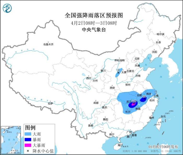 預(yù)計(jì),4月2日08時(shí)至3日08時(shí),湖北大部、河南南部、安徽南部、江蘇南部、上海北部、湖南東北部、江西北部、浙江西北部等地部分地區(qū)有大到暴雨,其中,湖北東南部、湖南東北部、安徽東南部、江西東北部等地局地有大暴雨(100~150毫米);湖北南部、湖南中北部、江西中北部、浙江中東部、廣西東北部等地的部分地區(qū)將有8-10級(jí)雷暴大風(fēng)或冰雹天氣,局地風(fēng)力可達(dá)11級(jí)以上,冰雹直徑可達(dá)2厘米;安徽中南部、江蘇南部、上海北部、湖北東部和南部、湖南中北部、江西中北部、浙江西部和北部、福建西北部、重慶中東部、貴州東部、廣西東北部等地的部分地區(qū)將有短時(shí)強(qiáng)降水天氣,最大小時(shí)雨量30-50毫米,局地可達(dá)70毫米以上。預(yù)計(jì),強(qiáng)對(duì)流的主要影響時(shí)段為今天午后至夜間。中央氣象臺(tái)4月2日06時(shí)繼續(xù)發(fā)布暴雨藍(lán)色預(yù)警和強(qiáng)對(duì)流天氣黃色預(yù)警。