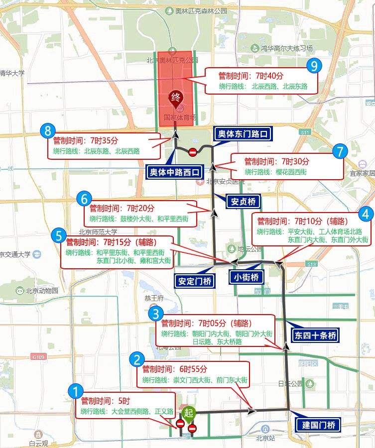 2024北京國(guó)際長(zhǎng)跑節(jié)北京半程馬拉松比賽將于4月14日(周日)7時(shí)舉行。起點(diǎn)設(shè)在天安門廣場(chǎng),終點(diǎn)設(shè)在奧林匹克公園中心區(qū)慶典廣場(chǎng)。比賽期間,部分道路將采取禁止機(jī)動(dòng)車和非機(jī)動(dòng)車通行的交通管理措施。比賽和繞行路線戳圖:
