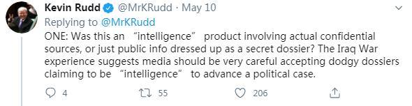 5月10日,陸克文在社交媒體再次連發(fā)五問,質(zhì)疑可能參與此次“甩鍋中國(guó)”事件的各方。他的第一問稱,這所謂的15頁“情報(bào)”,究竟是源于真實(shí)的絕密情報(bào),還是根據(jù)公開信息拼湊而成?他表示,“伊拉克戰(zhàn)爭(zhēng)的教訓(xùn)早已告誡媒體,必須謹(jǐn)慎對(duì)待所謂的‘情報(bào)’,以防陷入某種政治目的之中?!?/p>