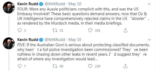 第四問、第五問則針對(duì)澳大利亞政府。他表示,澳政客是否也有份參與,背后是否有美國(guó)駐澳使館的推動(dòng)?