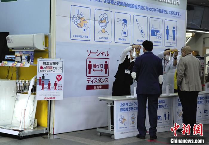 當(dāng)?shù)貢r間5月4日,日本東京某商店對進(jìn)店顧客進(jìn)行體溫檢測。