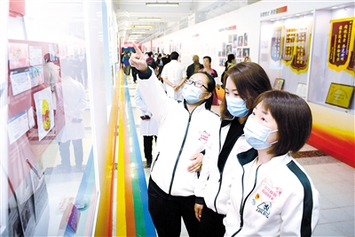 5月7日,中日友好醫(yī)院舉辦抗擊新冠肺炎疫情工作展開幕式??挂吖ぷ髡狗譃椤秶?guó)有召、召必應(yīng)》《應(yīng)必戰(zhàn),戰(zhàn)必勝》《英雄譜》《守土有責(zé)》4個(gè)章節(jié),展現(xiàn)醫(yī)務(wù)人員全力救治患者的英雄風(fēng)采。本報(bào)記者張丹攝