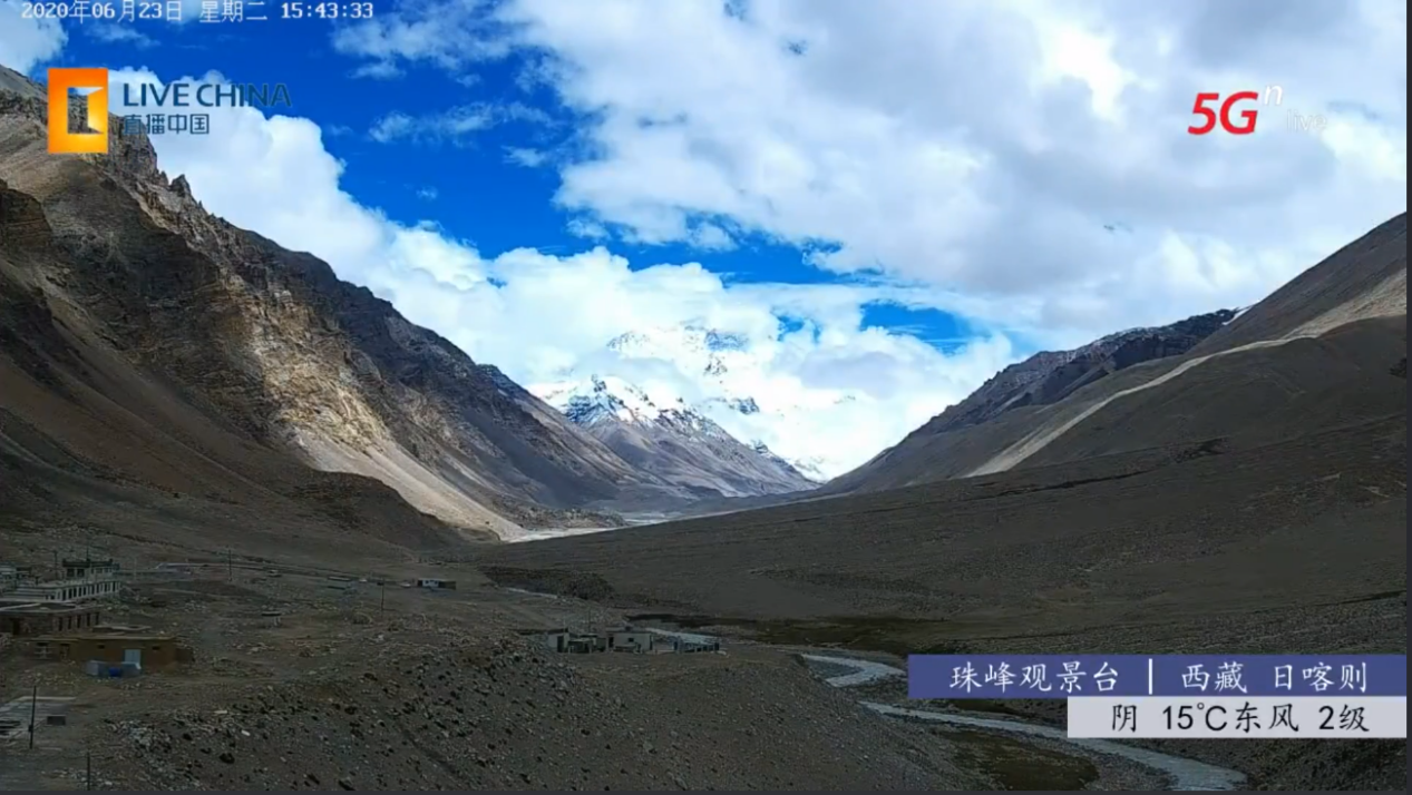 圖為中國(guó)聯(lián)通珠峰觀景臺(tái)5G直播畫(huà)面