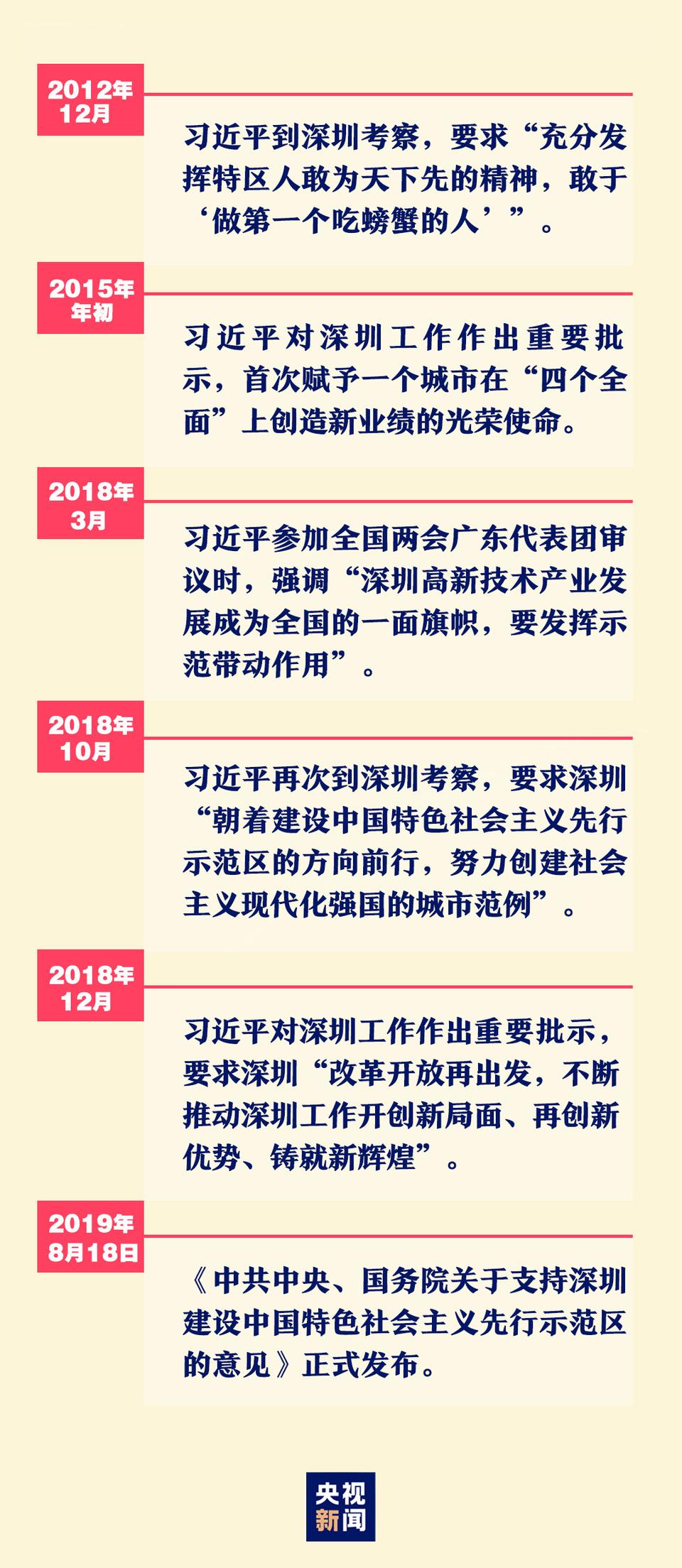 在習(xí)近平總書記的親自謀劃、親自部署、親自推動下,2019年8月18日,《中共中央、國務(wù)院關(guān)于支持深圳建設(shè)中國特色社會主義先行示范區(qū)的意見》正式發(fā)布。這是繼興辦經(jīng)濟(jì)特區(qū)后,深圳迎來的又一重大歷史機(jī)遇。從試驗田到先行示范區(qū),深圳承載的不僅是改革開放的先鋒使命,更是中華民族偉大復(fù)興的責(zé)任與擔(dān)當(dāng)。