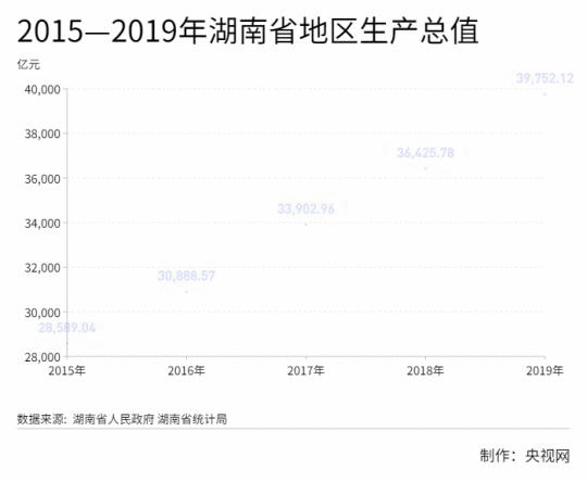 2019年,湖南地區(qū)生產(chǎn)總值接近4萬億元,達(dá)39752.12億元,按不變價格計算,比上年增長7.6%,符合7.5%—8%的預(yù)期目標(biāo)。