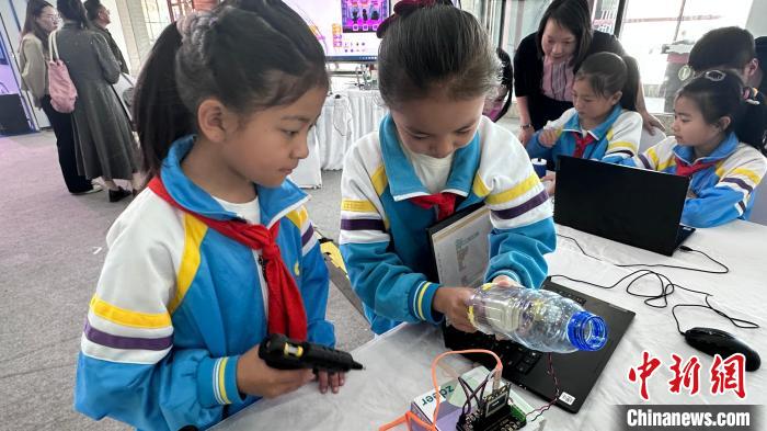 圖為西藏自治區(qū)拉薩市城關(guān)區(qū)海城小學(xué)的學(xué)生正在學(xué)習(xí)“AI創(chuàng)客”的課程。澤塔雍措攝