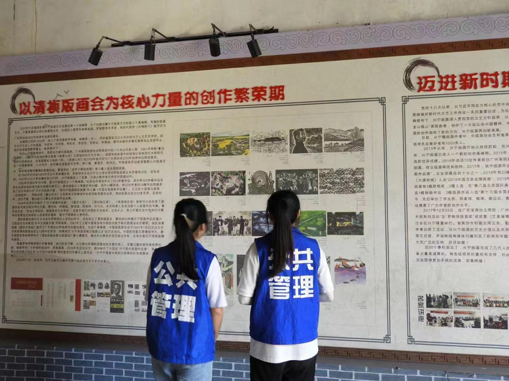 7月7日-7月10日,廣東財(cái)經(jīng)大學(xué)“版興紅韻”實(shí)踐團(tuán)前往興寧市葉塘鎮(zhèn)開展主題為“激活興寧版畫資源,弘揚(yáng)紅色革命文化”的“百千萬(wàn)工程”突擊隊(duì)行動(dòng),隊(duì)員們參觀了位于興寧市葉塘鎮(zhèn)的磐安圍,抗戰(zhàn)木刻作品展覽區(qū)、羅映球版畫作品展覽區(qū)等版畫作品展覽讓隊(duì)員們感受到非遺文化的魅力,隊(duì)員們還開展了版畫畫家訪談、參觀“十里版畫長(zhǎng)廊”、記錄版畫故事、青少年問卷調(diào)查等活動(dòng),讓他們對(duì)探索弘揚(yáng)傳統(tǒng)非遺文化與蘇區(qū)精神有了新的思考。