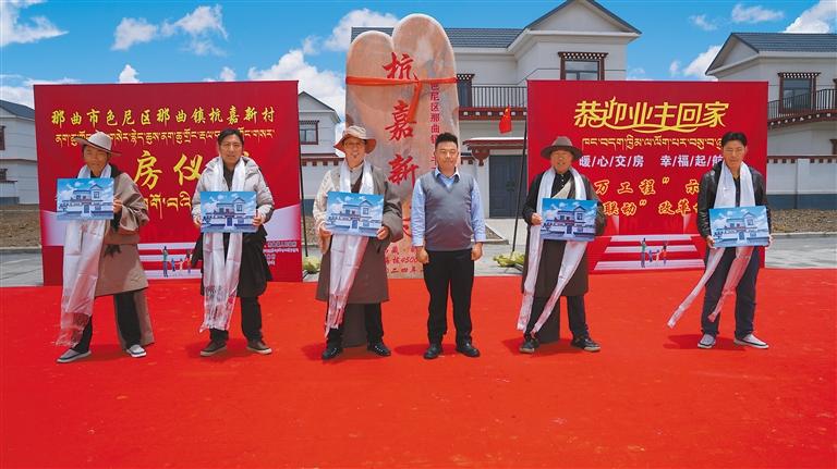 今年6月,那曲市色尼區(qū)那曲鎮(zhèn)杭嘉新村分房?jī)x式現(xiàn)場(chǎng)。記者 萬(wàn)靖 攝
