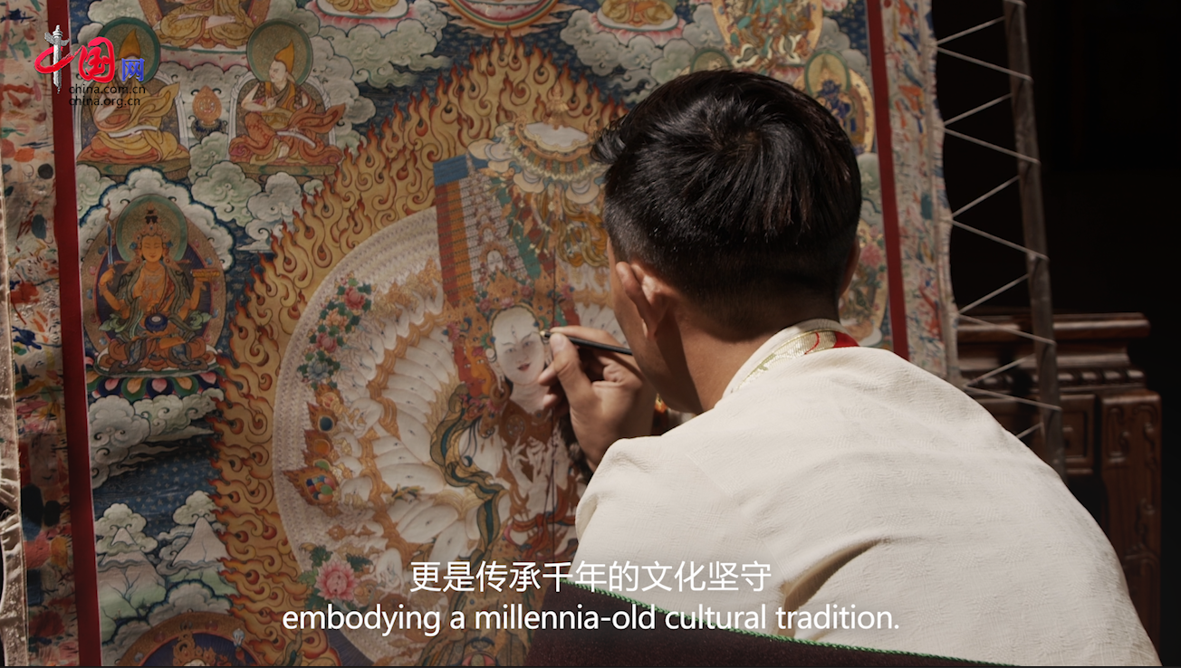 Today, thangka art has found new opportunities amid development, as the ancient techniques of lacquer painting and thangka merge to create a new artistic form. Thanks to the innovation of young thangka painters and the support from the Fujian Province’s aid program to Tibet, the art of “thangka lacquer painting” has emerged, showcasing the fusion of beauty between different ethnic groups and bringing tangible benefits to the local people.