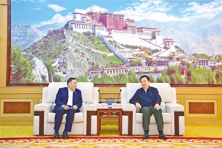 8月22日上午,自治區(qū)黨委書記王君正在拉薩與中國能建集團(tuán)董事長宋海良率隊(duì)的赴藏考察團(tuán)座談。這是座談現(xiàn)場。 本報(bào)記者 旦增西旦 攝