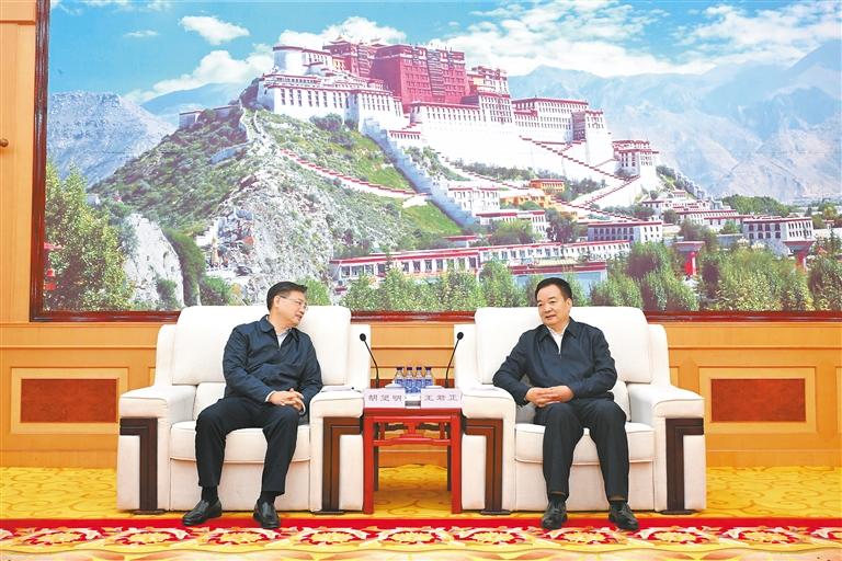 9日下午,自治區(qū)黨委書記王君正在拉薩與中國寶武鋼鐵集團黨委書記、董事長胡望明一行座談。